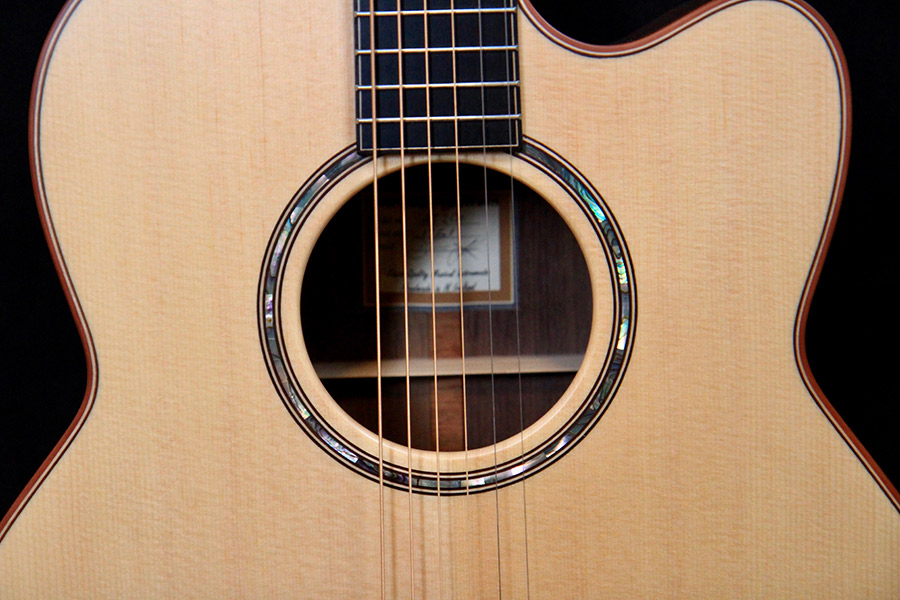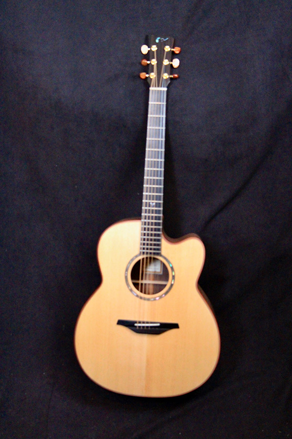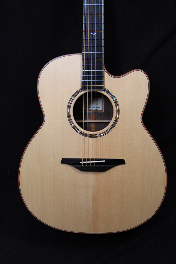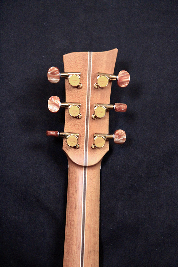 Comments: Mcilroy guitars are the epitome of craftsmanship…each a masterpiece onto its own. The wood set on this one is stunning in every way with an array of colors and silking to die for! The Jumbo body gives you lots of bottom end for BIG chords, as well as fat mids, and crystal clear trebles, all wrapped in a woody blanket of warmth.